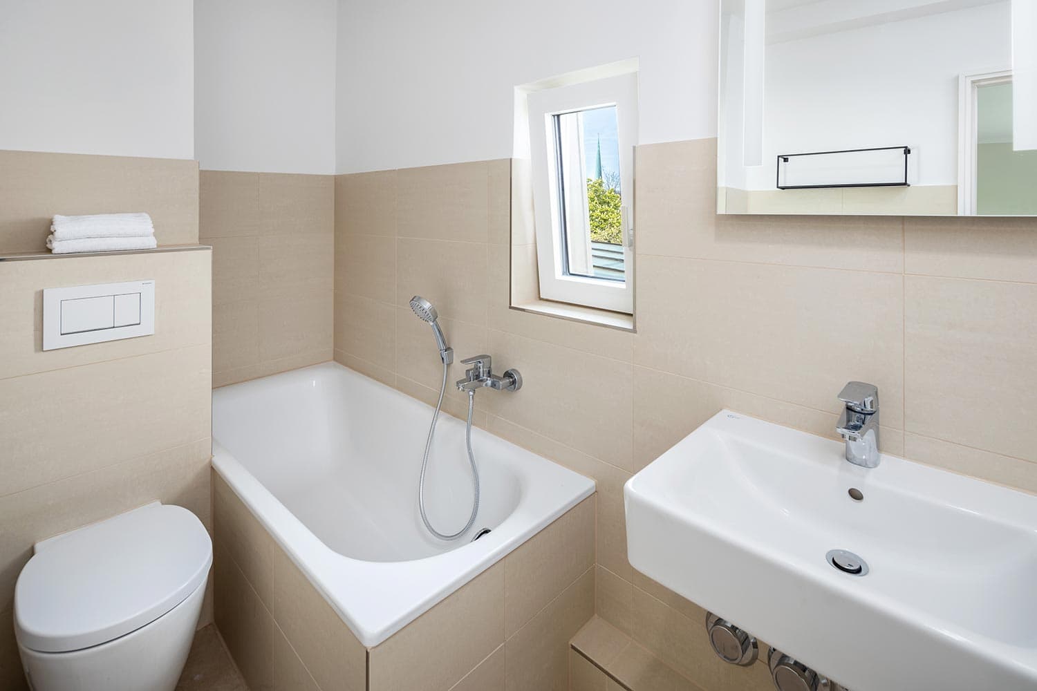 Geräumiges Badezimmer mit Badewanne